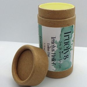 An eco-friendly cardboard pushup tube to house this one of a kind relief lotion! Everyone that has tried this lotion has fallen in love. Many customers have had great success with eczema and psoriasis relief. Others have applied Truelys Relief to their forehead, temples, and neck to relieve headaches and migraines. Some folks have used this lotion tube to help with sore muscles and even arthritis! What can Truelys Relief help you with? Give it a try and see for yourself.
